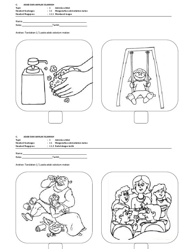 Kurikulum standard prasekolah kebangsaan tunjang kerohanian, lembaran kerja pendidikan moral prasekolah. Guru boleh membuat permainan yang memerlukan murid menjawab soalan mudah.